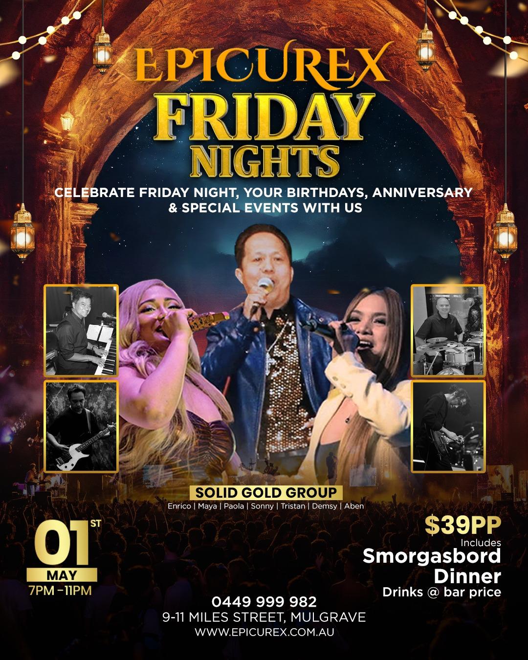 Friday nights at Epicurex come alive with live music, curated menus, and signature cocktails. Showcasing talented local performers, our venue offers a warm and energetic atmosphere ideal for small gatherings, dancing, birthdays, anniversaries, graduations, and special celebrations.